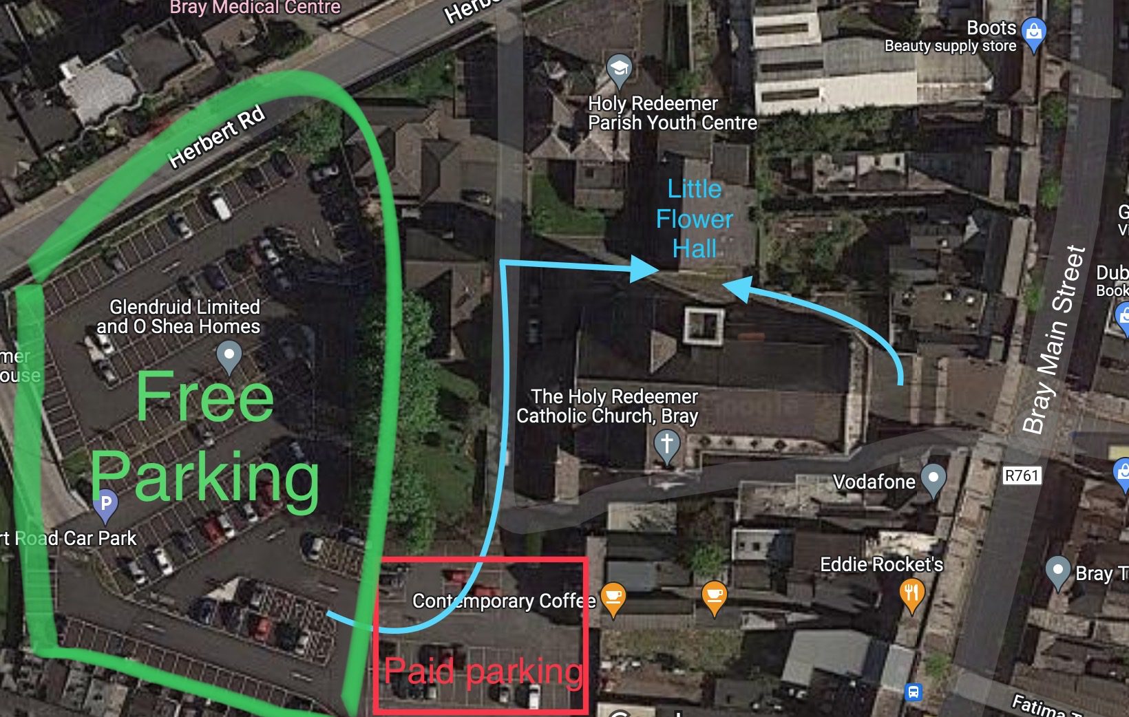 Rehearsals take place on Tuesday evenings from 7:30pm to 9.30pm in Little Flower Hall (beside Holy Redeemer Church in Bray).